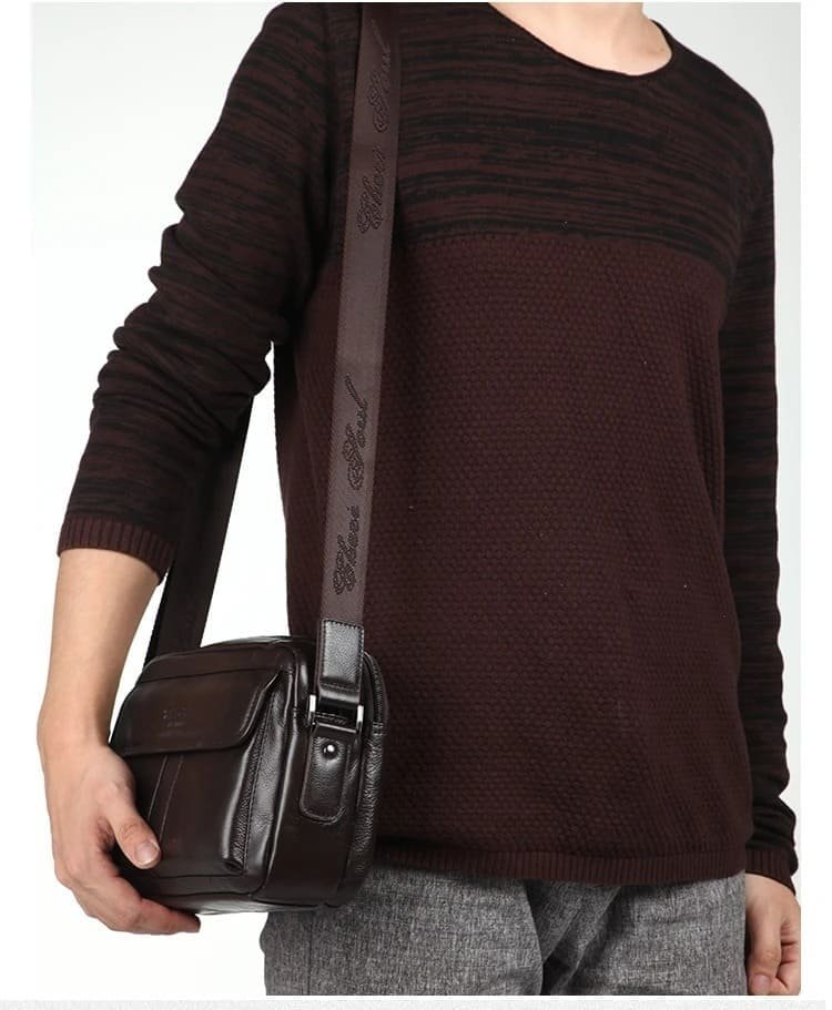 Com design compacto e linhas clássicas, esta bolsa carteiro masculina transversal é confeccionada em couro legítimo, apresentando textura natural, toque macio e aparência sofisticada. O acabamento cuidadoso e as costuras reforçadas demonstram qualidade desde o primeiro contato.