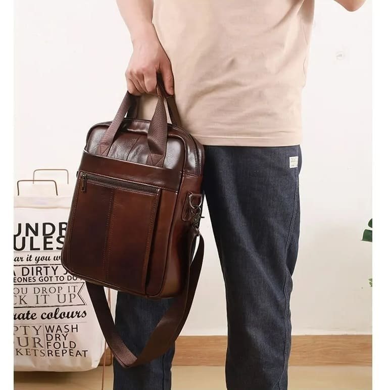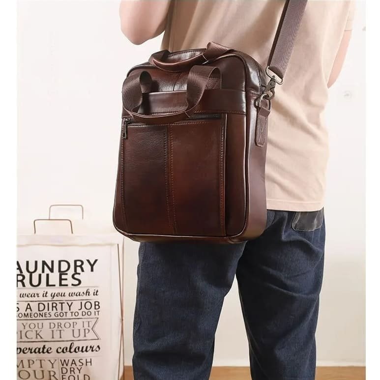 O design desta bolsa de couro masculina transversal prioriza funcionalidade sem abrir mão da sofisticação. O couro legítimo confere resistência, textura agradável ao toque e aparência refinada, enquanto as costuras reforçadas e os metais de qualidade transmitem robustez e durabilidade.