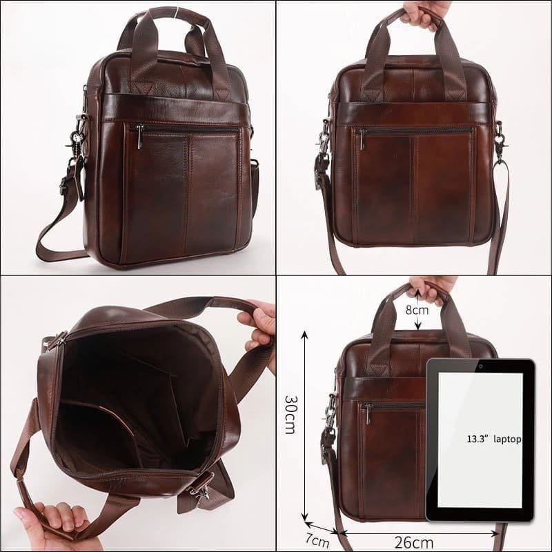 Descrição detalhada desta bolsa de couro masculina