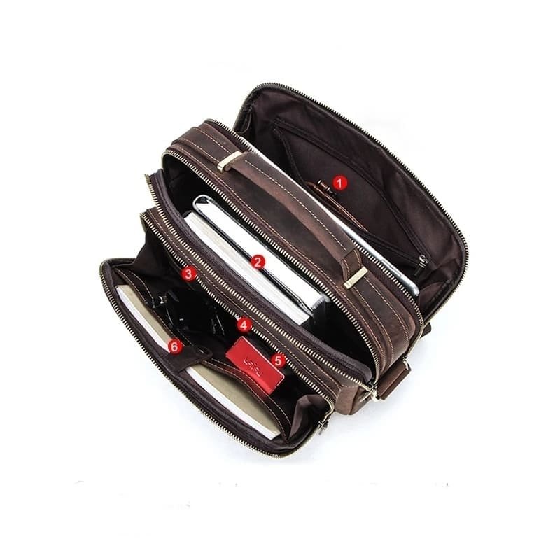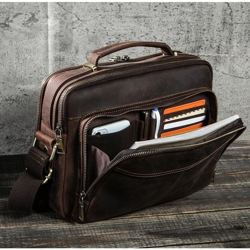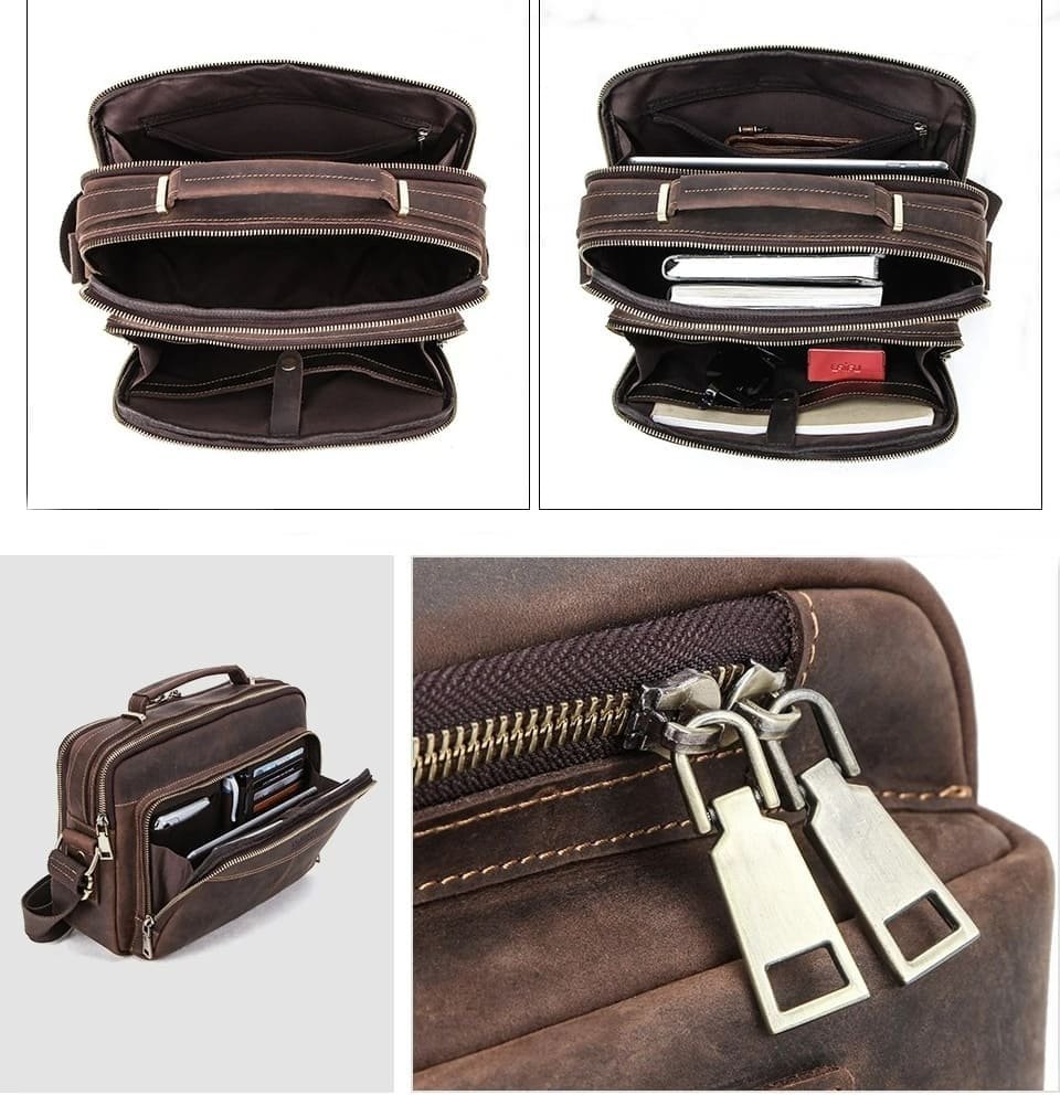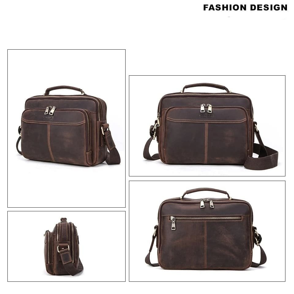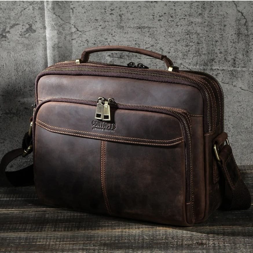 Mais do que uma bolsa, este é um acessório pensado para acompanhar o ritmo do homem contemporâneo. O couro legítimo garante durabilidade superior, enquanto o design interno otimiza espaço e praticidade. Cada detalhe — do zíper metálico reforçado à costura contrastante — foi pensado para oferecer uma experiência de uso premium. Um excelente custo-benefício para quem busca funcionalidade e estilo duradouro.