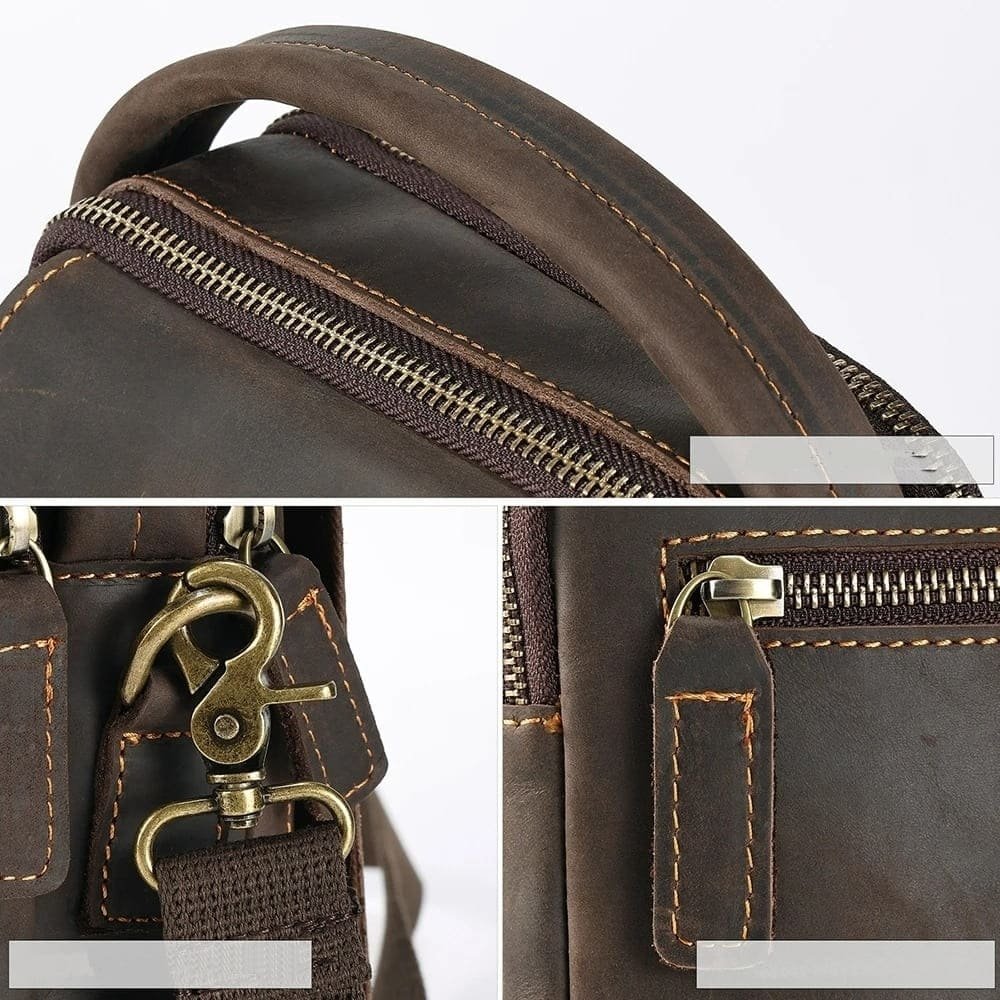 Fabricada em couro legítimo Crazy Horse, essa bolsa traz um visual vintage com marcas naturais, que se destacam pelo charme rústico e exclusivo. Seu acabamento reforçado com costura espessa e zíperes metálicos suaves garante resistência ao uso diário e prolonga a vida útil da peça.