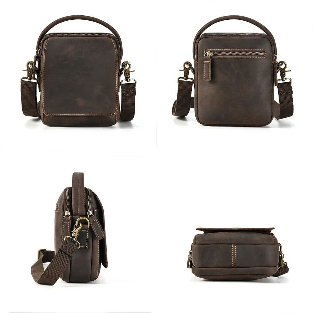 Descrição detalhada desta bolsa transversal de couro masculina